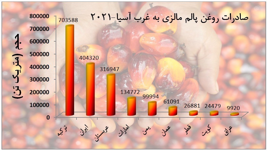 در گزارش اخیر شورای روغن پالم مالزی (MPOC) نیز اشاره شده است که منطقه خاورمیانه با جمعیت بیش از 330 میلیون نفری و مصرف 2.34 میلیون تن در سال گذشته، همچنان یک مقصد مهم صادراتی برای مالزی خواهد بود. به گفته مدیرعامل این شورا؛ طی سالهای اخیر شاهد رشد مداوم مصرف چربیهای خوراکی بویژه روغن پالم در این منطقه هستیم. سال گذشته صادرات روغن پالم مالزی به خاورمیانه 8.2 درصد افزایش یافت و بیشترین واردات از این منطقه متعلق به ترکیه با حجم 703588 تن و پس از آن ایران با 404319 تن بوده است. این دو بازار به ترتیب 19 و 25 درصد افزایش داشته اند. در نگاه مالزیاییها، ترکیه علاوه بر رشد بازار مصرف داخلی به میزان 50 درصد در یک دهه اخیر، همچنین دارای موقعیت استراتژیک در خصوص فرصت صادرات مجدد به منطقه بالکان و آسیای مرکزی و قفقاز میباشد.