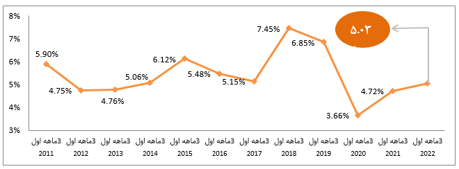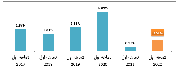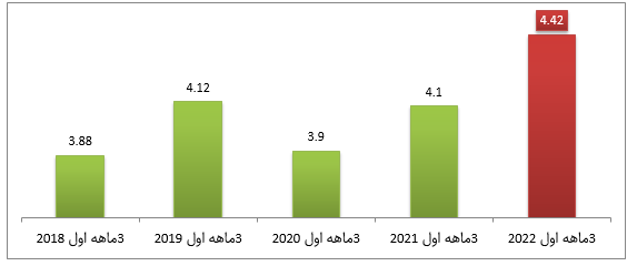 نمودار 4: شاخص قیمت مصرف کننده CPI در 3 ماهه اول 2022 و در مقایسه با مدت مشابه سالهای قبل