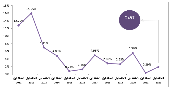 نمودار 1: رشد تولید ناخالص داخلی ویتنام در سه ماهه اول 2022 و مقایسه با مدت مشابه سالهای قبل