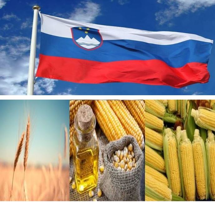 در سال 2021، اسلوونی تقریباً 118000 تن گندم و مس لین ( محصولی از خانواده گندم ) وارد نمود که بیشتر آن یعنی 51.1 درصد آن از مجارستان و 30.3 درصد از کرواسی وارد شد. اسلوونی تقریباً 224000 تن ذرت وارد کرد که بیش از 90 درصد از کرواسی و مجارستان بود.