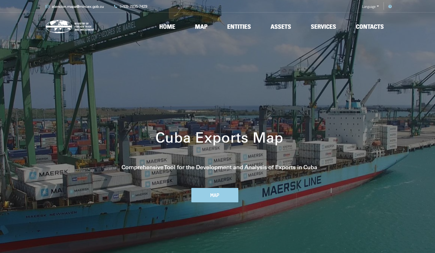در این بخش لایه‌های مختلفی از نقشه کشور کوبا که بر اساس شهرداری‌ها، استان‌ها و بنادر خروجی تنظیم شده اند نهادهای مرتبط با صادرات معرفی شده و علاوه بر راهنمای خوانش نقشه و جهت یاب GPS، امکان زوم 14 برابر و مشاهده تصویر ماهواره ای و یا به تفکیک خیابان‌ها برای علاقمندان فراهم شده است.