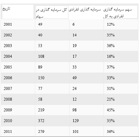 در سال مذکور در حالی که میزان خرید سهام خارجی از ترکیه 150 میلیون دلار بود، 49 میلیون دلار از این خریدها از سوی سرمایه گذاران انفرادی صورت گرفت.