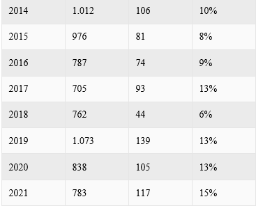 اگرچه در سال گذشته افزایشی در شاخص بازار بورس استانبول BIST 100 وجود داشت، اما با نگاهی به وضعیت دلار در کشور ، تصویر متفاوتی ظاهر شد. در سال2021میلادی ، بورس استانبول 56 درصد افزایش یافت و سال را با 1857 واحد بست. البته دلار نیز در این مدت از 7.41 لیر به 13.31 لیر ترک رسید. بنابراین، بر حسب دلار، شاخص بورس استانبول در واقع 29.3 واحد کاهش داشت. از نظر دلاری، این شاخص در ماه می سال 2013 میلادی با بیش از 510 رکورد شکسته بود.