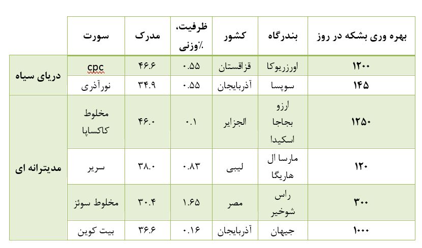 - سوپسا (نفت آذربایجان از طریق گرجستان): 620