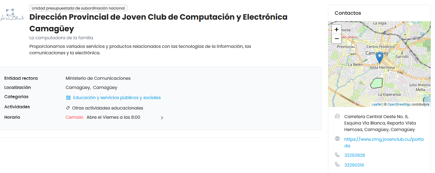 این وبسایت به زبان اسپانیایی و با طراحی ساده با شعار اولین و کامل ترین دایرکتوری فعالان اقتصادی در جزیره، به معرفی تولید کنندگان، رستورانها، بیمارستانها، ارائه دهندگان خدمات و موارد دیگر در کوبا میپردازد و توضیح می دهد که در این وبسایت میتوانید اطلاعات دقیق بیش از 300000 کسب و کار در کوبا را بیابید، به پیشنهادهای شغلی بیشتر و بهتر دسترسی داشته باشید، فرصت های تجاری بیشتر را کشف و در مناقصات عمومیشرکت کنید.