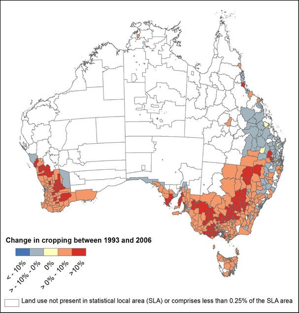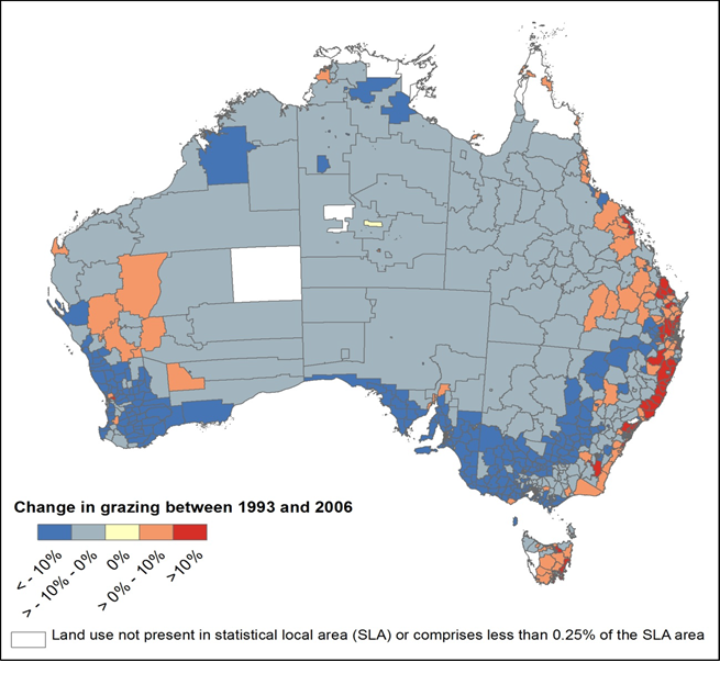 نقشه زیر تغییرات در کاربری اراضی ویژه مرتع در استرالیا ما بین 1993 تا 2006 را نشان می دهد