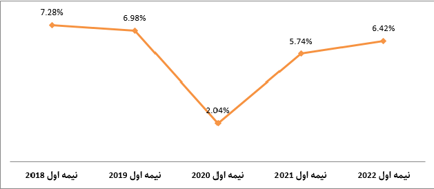 نمودار 1: رشد تولید ناخالص داخلی ویتنام در نیمه اول 2022 و مقایسه با مدت مشابه در سالهای قبل