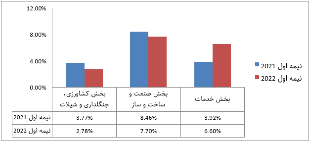 نمودار2: رشد تولید ناخالص داخلی بخشهای اقتصادی ویتنام در نیمه اول 2022 و نسبت به سال های قبل