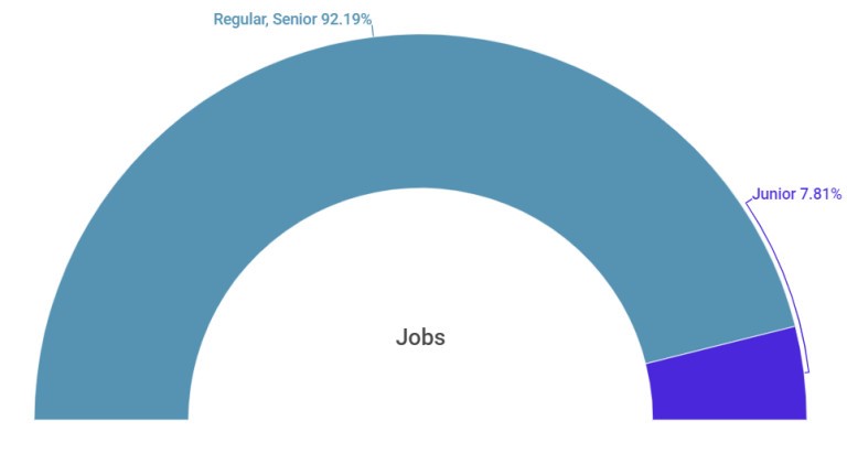 نسبت نقش ها بر حسب ارشدیت در سازمانها نیز طی نه ماه گذشته تغییر کرده است. موقعیتهای جونیور/کارآموز (شروعکننده) افزایش یافت و به 7.8٪ از فهرستهای موجود در پلتفرم رسید، که 18٪ از آنها گزینه کار از راه دور را ارائه کردند.