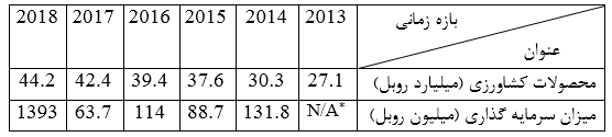 ارزش تولیدات محصولات کشاورزی استان آستراخان و میزان سرمایه گذاری در این عرصه