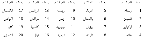 - جدول شاخص سازگاری استفاده از ارزهای دیجیتالی 20 کشور نخست جهان :