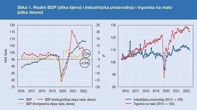 کاهش سطح فعالیتهای اقتصادی کرواسی در سه ماهه سوم سال جاری و پیشبینیهای نامطلوب برای سال آینده، این سوال را مطرح کرده است که آیا کرواسی وارد رکود جدیدی میشود یا خیر؟ در آغاز سال 2022، اقتصاد جهان با عدم اطمینان ژئوپلیتیک به دلیل جنگ در اوکراین مواجه شد. این درگیری، مشکلات موجود در زنجیره تامین که در نتیجه کرونا پدیدار شده بود را تشدید کرد، همچنین رشد قیمت انرژی را تسریع کرده و در نهایت، تأثیر شدید افزایشی بر تورم گذاشت. وجود این موارد، همراه با اثرات سریع و شدید سیاستهای پولی، تاثیر نامطلوبی بر شاخصهای اقتصادی دارد و پیشبینیها برای سال آینده را بسیار بدبینانه نموده است؛ به نحوی که برخی از شاخصهای فعالیت اقتصادی، از جمله تولید ناخالص داخلی، تولید صنعتی و تجارت خردهفروشی به کاهش شدید رشد اقتصادی و حتی رشد منفی در کرواسی و برخی دیگر از کشورها در اروپا و جهان دلالت دارند.