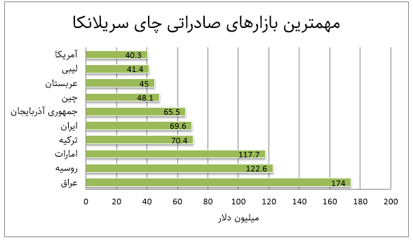 بازارهای صادراتی چای سریلانکا در چند سال گذشته تقریباً روند ثابتی داشته است. در این روند کشورهای عراق، امارات، ترکیه و روسیه معمولاً در بین کشورهای اول این فهرست قرار دارند و سهم بازار ایران که زمانی اولین واردکننده چای از سریلانکا محسوب میشد با کاهش همراه بوده و مانند سال گذشته در جایگاه پنجم قرار گرفت.