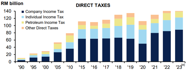 همچنین در سال 2022 با توجه به افزایش قیمت سوخت، میزان مالیات بر درامد شرکتهای مرتبط با صنعت نفت و گاز مالزی شاهد رشد قابل توجه 66.8 درصدی نسبت به سال 2021 بود و میزان آن از 11.6 میلیارد رینگیت به 19.3 میلیارد رینگیت رسید.