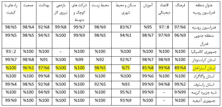 بنابر گزارش ارائه شده در نشست بررسی نتایج اجرای پروژههای ملی در محدوده جغرافیایی استان آستراخان ، عملکرد شاخص ها نسبت به سال های قبل بمراتب بهتر شده است اما هر نتیجه ی کمتر از 100 درصد غیر مطلوب میباشد.