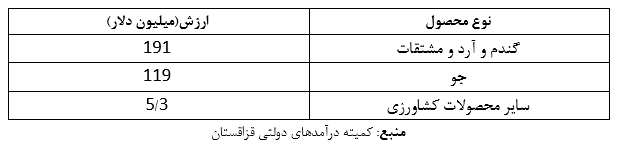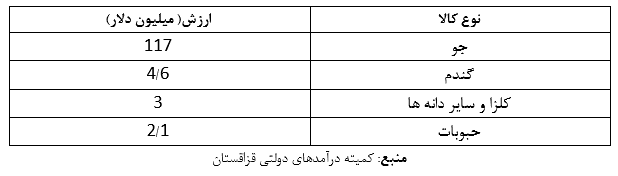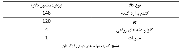 طبق آمار طرف قزاقستانی، درسال مورد نظر ارزش مجموع صادرات این کشور به ایران 129 میلیون دلار بوده است. از این مقدار 126.7 میلیون دلار صادرات جو، گندم، کلزا و سایر دانهها و حبوبات بوده است. درواقع فقط 2.3 میلیون دلار از واردات ایران در سال یادشده محصولات غیر کشاورزی بوده است. به عبارت دیگر بیش از 98 درصد از واردات ایران از قزاقستان در سال مزبور محصولات کشاورزی بوده است.