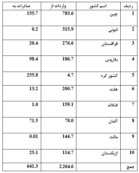 حجم صادرات و واردات با این کشور ها (میلیون دلار):