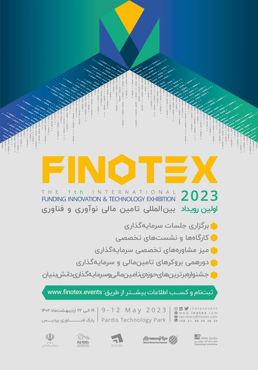 اولین دوره رویداد بینالمللی تامین مالی نوآوری و فناوری FINOTEX با حمایت معاونت علمی، فناوری و اقتصاد دانشبنیان ریاست جمهوری همزمان با دوازدهمین دوره نمایشگاه اینوتکس در تاریخ 19 لغایت 22 اردیبهشت ماه سال 1402 در محل پارک فناوری پردیس برگزار میگردد.