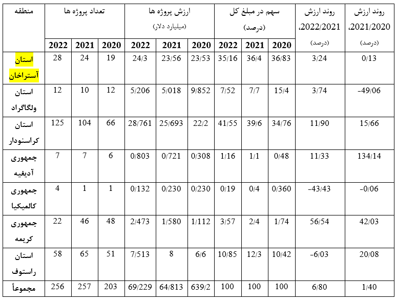 وضعیت پروژههای سرمایه گذاری منطقه جنوبی فدرال روسیه در سال 2022