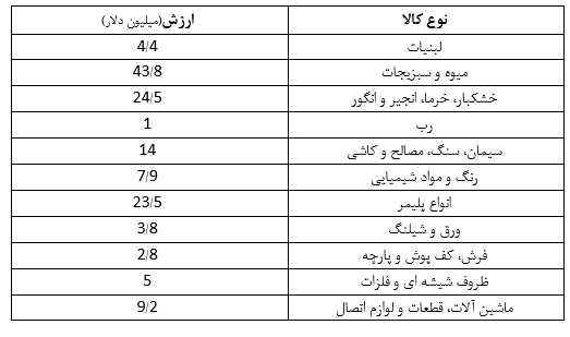 (به تفکیک مهمترین اقلام)