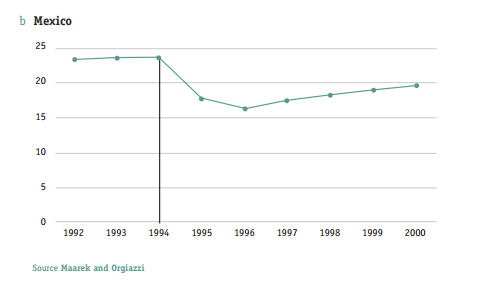 مطالعه دیگری تأثیر بحرانهای مالی بر دستمزدهای تولیدی را بررسی کرده است. این مطالعه نشان داد که بحرانهای ارزی تمایل دارند بر دستمزد تولیدی تأثیر منفی بگذارند و دستمزدها پس از بحران به طور قابل توجهی کاهش می یابد و سپس به سطح پایین تر از قبل از بحران اصلاح میشود (شکل 4). این مطالعه به طور متوسط افت 2 درصدی در سهم نیروی کار را نشان داد که به عنوان کسری تولید اقتصادی که از غرامت کارگران به دست میآید تعریف میشود. با روند مشابهی که در بخش تولید لبنان مشاهده میشود، این یافتهها باید برای نیروی کار تولیدی در لبنان اطمینان بخش باشد.