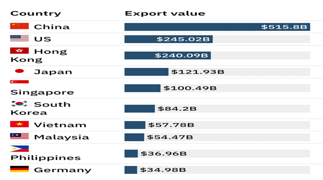 صادرات هر کشور به چین (دلار آمریکا)