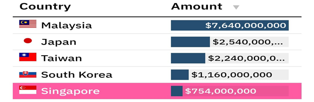 کشور دیگری که تلاش میکند فشارهای رقابتی ایالات متحده و چین را متعادل کند، سنگاپور است. جذب سرمایهگذاری خارجی، بهویژه از سوی شرکتهای بزرگ جهانی مانند TSMC، Micron Technology، و GlobalFoundries یکی از گامهای کلیدی در استراتژی توسعه کشور از زمان استقلال بوده است. به این ترتیب، هر گونه آشفتگی در زنجیرههای تامین نیمههادی منطقه ای به شدت در این کشور جزیره ای احساس میشود. صادرات تراشه سنگاپور به چین در سال 2021 بالغ بر 754 میلیون دلار بوده است.