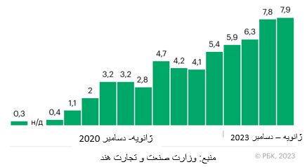 بر اساس دادههای وزارت تجارت و صنعت هند، تحویل نفت از روسیه به هند تا آوریل 2023 به 7.9 میلیون تن رسید. در همان زمان، از ژانویه تا مارس 2022، تحویل در این کشور عدد 0.3-0.4 میلیون تن در ماه را نشان می داد. در ماه می 2023، تحویل از روسیه 46 درصد از کل واردات نفت به هند را به خود اختصاص داد.