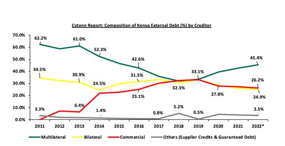 نمودار زیر روند قرار گرفتن در معرض بدهی خارجی کنیا را بین سالهای 2011-2022 نشان میدهد. (منبع: خزانه داری ملی)