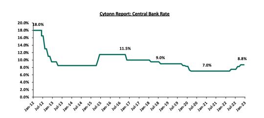 انتظار میرود اقدامات اخیر دولت برای واردات کالاهای خوراکی بدون عوارض گمرکی برای برخی اقلام غذایی مانند ذرت و برنج باعث تعدیل قیمتها و در نتیجه کاهش فشارهای تورمیشود. در سال 2022، نرخ بهره را افزایش یافت و از 7.0 درصد در ژانویه به 8.75 درصد در نوامبر رسید. نمودار زیر نرخ بهره را طی 10 سال گذشته نشان میدهد. شایان ذکر است که محدوده بهره که توسط بانک مرکزی کنیا اعلام شده است، 7.5٪ - 2.5٪. میباشد.