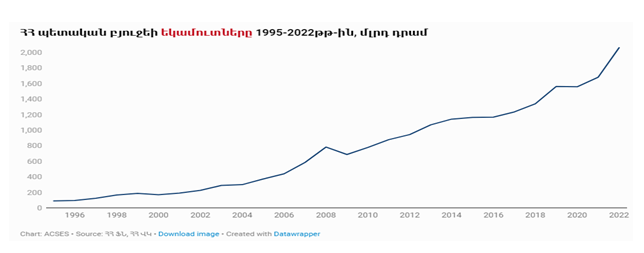 (درآمدهای بودجه دولتی جمهوری ارمنستان در سالهای 1995-2022 به میلیارد درام)