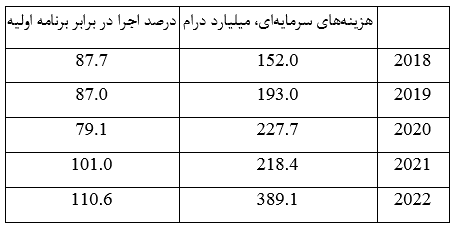 هزینههای سرمایهای بودجه دولتی در سال 2022