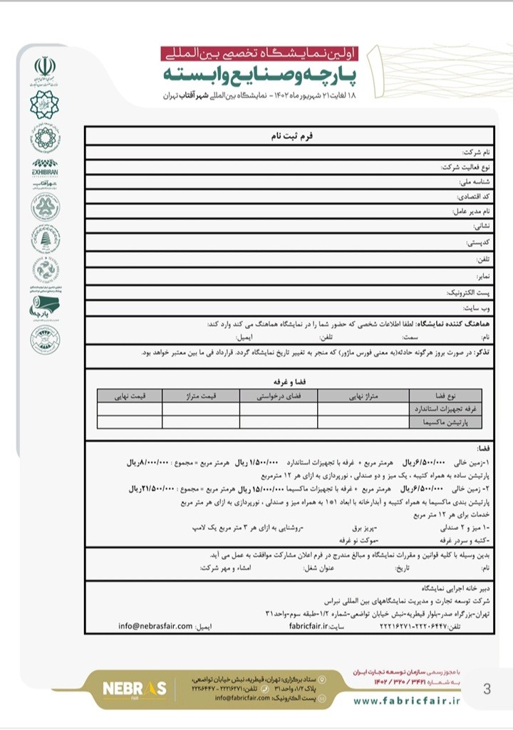 فرم ثبت نام نمایشگاه تخصصی بین المللی پارچه و صنایع وابسته