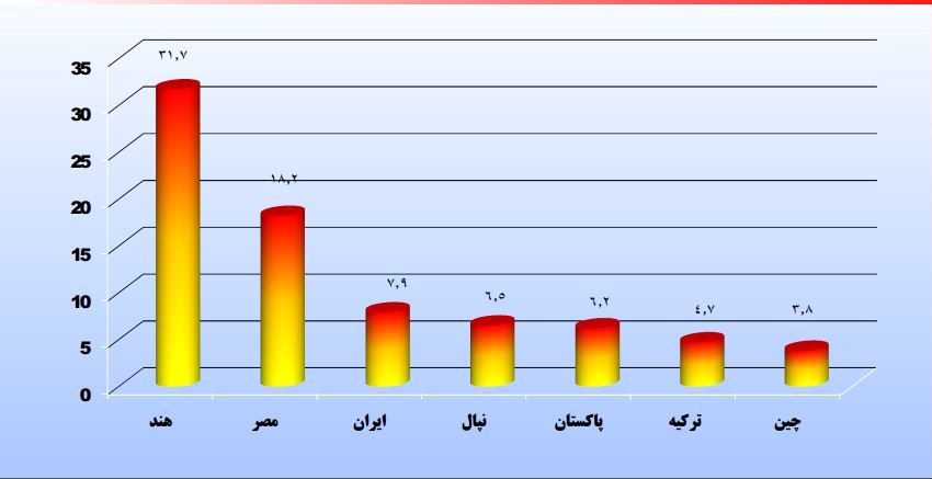 10 کشور برتر واردکننده فرش از پاکستان :(هزاردلار)