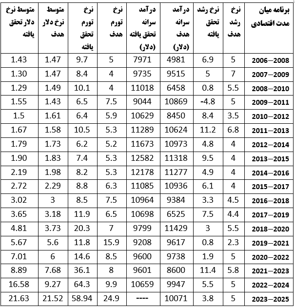 در سالهای برنامه میان مدت، نرخ رشد تولید ناخالص داخلی بیشتر از سطح هدف بود. در 7 سال از 18 سال 2017-2006، نرخ رشد کمتر از هدف باقی ماند و نامطلوب بود.