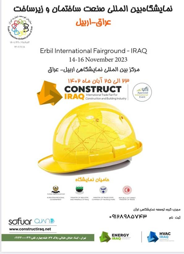 نمایشگاه بینالمللی صنعت ساختمان و زیرساخت عراق-اربیل در تاریخ 16-14 نوامبر برابر با 23 الی 25 آبان 1402 در محل نمایشگاه بینالمللی اربیل برگزار میگردد.