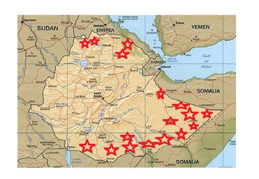 این کمک ها برای دور دوم انجام گرفته و در 15 روز گذشته صورت پذیرفت . در دور اول، کمک های بشردوستانه به نزدیک به چهار میلیون نفر ارائه گردید. در کشور اتیوپی مناطقی وجود دارد که با توجه به وضعیت جغرافیائی ، خشکسالی آن را تهدید می نماید و همه ساله از طرف سازمانهای بین المللی کمک هائی به این کشور صورت میگیرد، در خلاصه توصیحات زیر تلاش شده ضمن آشنائی مختصر با مناطق در نقشه ارائه شده مناطق خشکسالی را با ستارههای قرمز مشخص نمائیم .