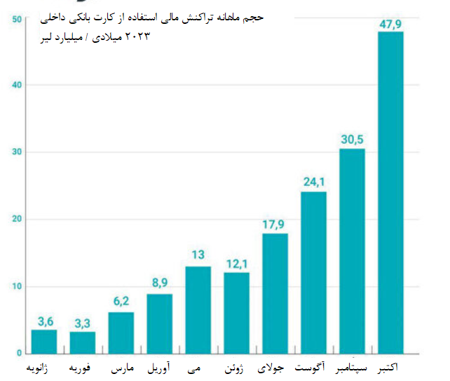 در حالی که حجم خرید با کارتهای لوگوی TROY در ماه اکتبر نسبت به ژانویه امسال تقریباً ۱۴ برابر شد و به ۴۸ میلیارد لیر رسید، از ابتدای سال ۲۰۲۳ در مجموع ۲۳۹.۲ میلیارد لیر تراکنش با کارتهای TROY انجام شده است. در حالی که استفاده از TROY در مقایسه با ژوئن سه برابر شده است، انتظار میرود تقاضا برای استفاده از کارتهایی بانکی TROY و جایگزینی آن به جای کارت های دیگر افزایش بیشتری پیدا کند.