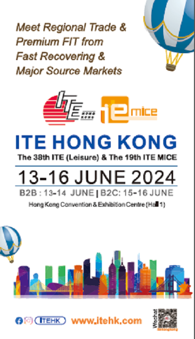 سی و هشتمین نمایشگاهِ گردشگریِ ITE و نوزدهمین نمایشگاهِ گردشگریِ ماکائو، موسوم به MICE، توأمان، از 13 تا 16 ژوئن 2024 در مرکزِ گردهمائی و نمایشگاهیِ هنگ کنگ برگزار میگردد.