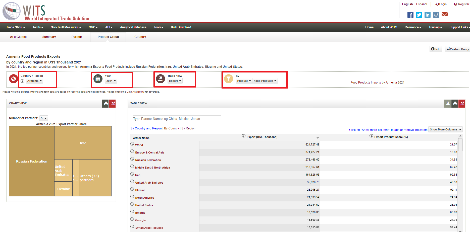 https://wits.worldbank.org/CountryProfile/en/Country/ARM/Year/2021/TradeFlow/Export/Partner/all/Product/16-24_FoodProd