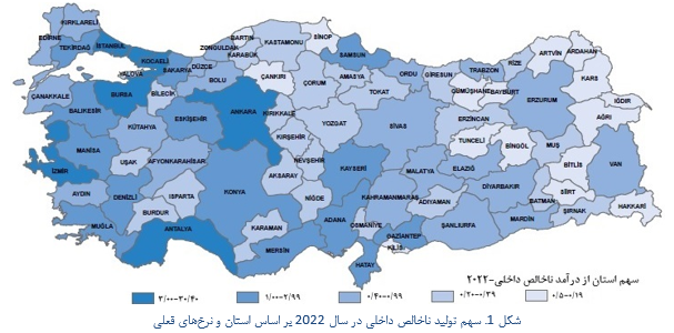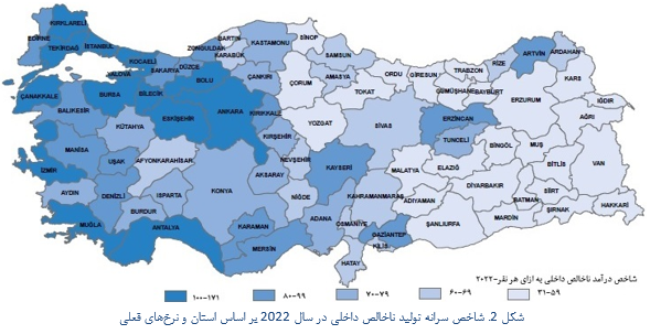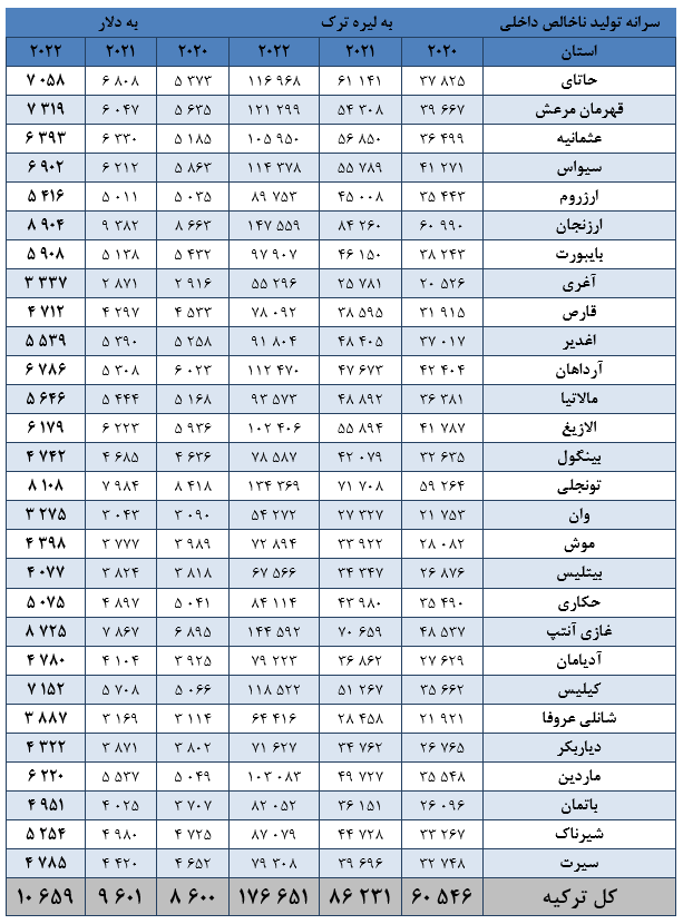 جایگاه استانهای شرق و جنوب شرق ترکیه در تولید ناخالص داخلی در سال 2022 میلادی