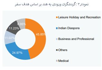 دلایل سفرهای گردشگران و مسافران وارد شده به هند شامل اوقات فراغت و تفریح (45.8درصد)، مهاجران هندی(24.9 درصد)، سفرهای کاری و تجاری(11.02 درصد) سفرهای پزشکی(6.95 درصد) و سایر دلایل (11.23درصد) بوده است. میزان درآمد ارزی کسب شده از گردشگران خارجی درسال2022، 10.6 میلیارد دلار و در سال 2023، 23.34 میلیادر دلار بوده است.