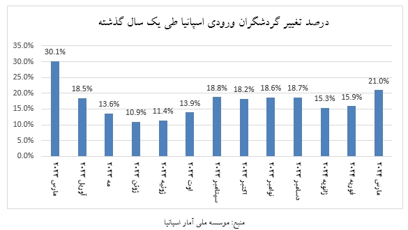 وضعیت گردشگری ورودی اسپانیا درسه ماه اول سال 2024
