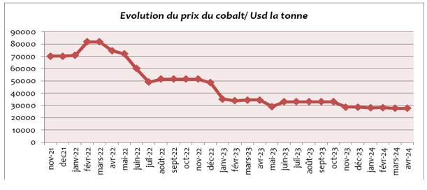 این حرکت نزولی جدید قیمت ها، اگرچه کند است، اما از ابتدای سه ماهه چهارم سال گذشته احساس شد و در آغاز سال 2024 ادامه دارد. BCC در یادداشت اقتصادی خود برای ماه مارس 2023 اشاره میکند که تن کبالت تا 7 مارس 2024 با قیمت 27.924.99 دلار در مقابل 32.750.38 دلار در پایان دسامبر 2023 معامله شد. با این حال، وقتی اخیراً به گذشته برمیگردیم، این سقوط قیمت واقعاً از اواسط سال 2022 آغاز شد، زمانی که قیمت کبالت در حد اوج سطح خود بود. اما در همان زمان شروع به تجربه فشار نزولی قوی به دلیل سهام بزرگ چین، تقاضای محدود و تولید قابل توجه از جمهوری دموکراتیک کنگو و اندونزی کرد.