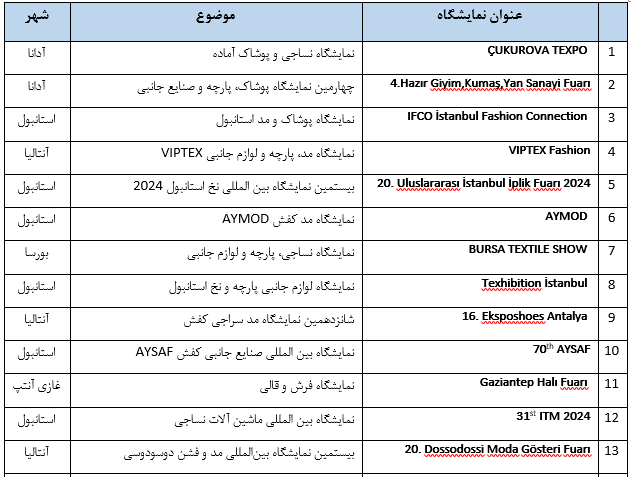 نمایشگاههای معتبر نساجی، پوشاک و صنایع جانبی ترکیه