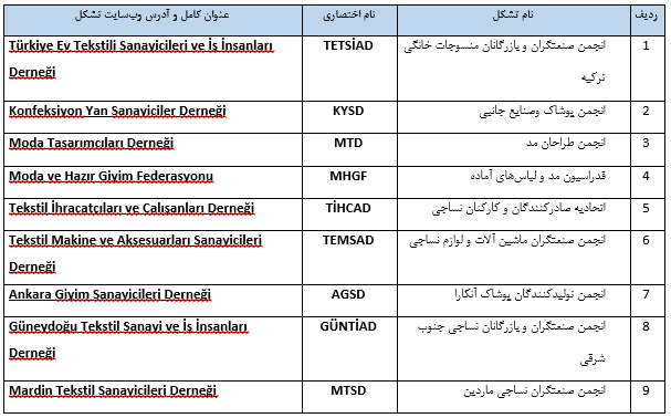 معرفی تشکلهای فعّال در حوزه صنعت نساجی و پوشاک در ترکیه