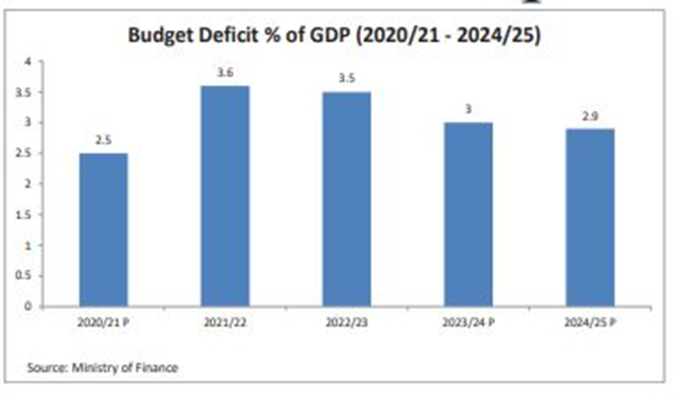 با اینحال اجرای این طرح ها، علیرغم قرار دادن کشور در مسیر توسعه و رشد اقتصادی، فشارهایی را بر بودجه کشور وارد نموده است. لذا دولت تانزانیا تلاش دارد به نحوی این کسری بودجه را کنترل کرده و از آسیب رسانیدن به بخش های مختلف جامعه ناشی از عواقب کسری بودجه دوری نماید. در خصوص کسری بودجه دولت در سالیان اخیر قابل ذکر است که در سال مالی 2020/21، کسری بودجه به 2.5 درصد از تولید ناخالص داخلی رسید که رقمی نسبتاً متوسط بود. با این حال، در سال 2021/22، کسری بودجه به 3.6 درصد تولید ناخالص داخلی افزایش یافت که نشان دهنده فشارهای اقتصادی آن دوره ناشی از کرونا، کاهش ورود گردشگر به کشور و ... بود. در حالی که رقم کسری بودجه به نسبت تولید ناخالص داخلی در کشور رو به افزایش بود، دولت تلاشهایی برای مدیریت این کسری انجام داد که مطابق با آمارها، می تواند نویدبخش کنترل کسری بودجه باشد. بطور مثال، در سال 2022/23 کسری بودجه کمی بهبود یافت و به 3.5 درصد تولید ناخالص داخلی رسید. این رقم برای سال مالی 2023/24، به 3 درصد کاهش و نهایتاً پیش بینی برای سال مالی 2024/25 به 2.9 درصد تولید ناخالص داخلی کاهش یابد. این روند حاکی از پیشرفت تدریجی و پیوسته به سمت یکپارچگی مالی در دولت تانزانیاست که با چشم انداز مطلوب اقتصاد جهانی از جمله کاهش تورم، تسهیل شرایط مالی و ثبات قیمت ها در بازارهای جهانی همراه بوده و این ثبات مالی می تواند تداوم یابد.
