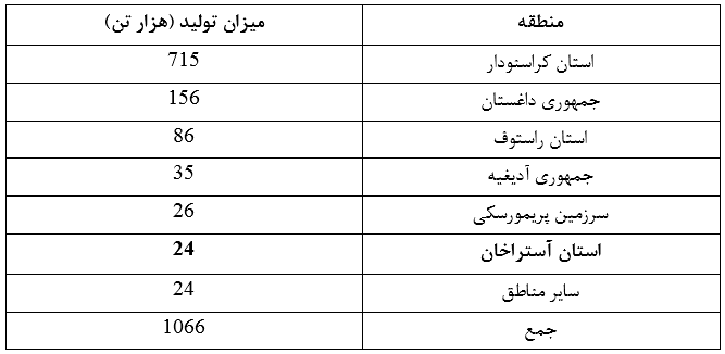 تولید محصولات کشاورزی به ویژه برنج در استان آستراخان
