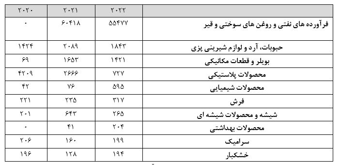 جدول مهمترین اقلام صادراتی ایران به کنیا (ارقام به هزار دلار)