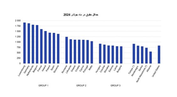 اگر به نحوه افزایش حداقل حقوق کشورهای پیشرفته تر اروپای غربی نگاه شود، تفاوت بسیار بیشتر هم میشود. در آلمان حداقل دستمزد 1546 یورو تضمین شده است، در حالی که در فرانسه حدود 1400 یورو و در اسپانیا حدود 1170 یورو است. همچنین حداقل دستمزد تنها با حداقل سبد مصرفی که آخرین بار در ماه مه سال جاری محاسبه شده است و از ماه ژانویه یکسان میشود.
